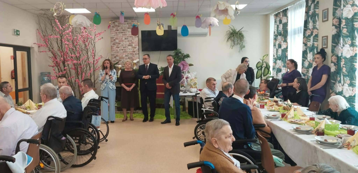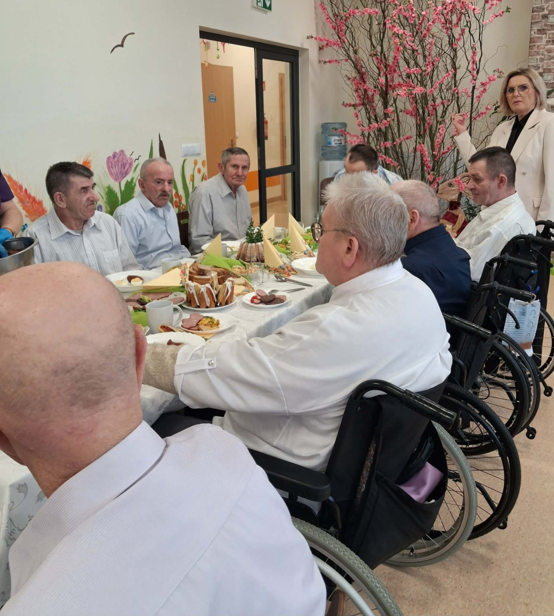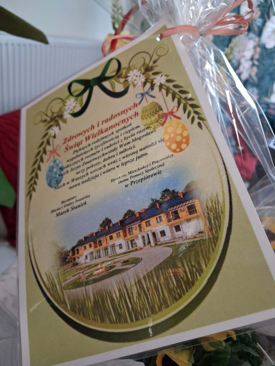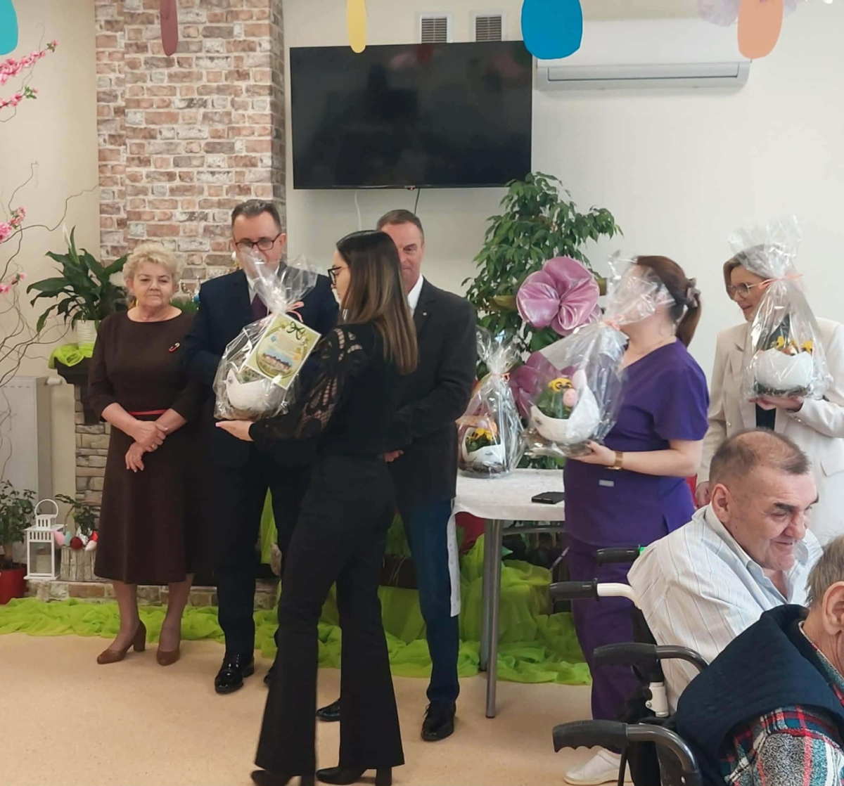 Pan Burmistrz przekazał wszystkim świąteczne życzenia ,,Niech ten czas Wielkiego Tygodnia, przygotowań, zabiegania i trudu przygotuje nas na piękne świętowanie, niech dla Was będą to radosne święta, bo tu znaleźliście dom i rodzinę to tu macie tak dużo miłości i dobrej opieki. Życzę Wam zdrowia, dobrej energii i radości z każdego dnia". Życzenia przekazali również Pani Sekretarz Wiesława Słowik i w imieniu Rady Przewodniczący Rady Miejskiej Wiesław Kowalczyk.