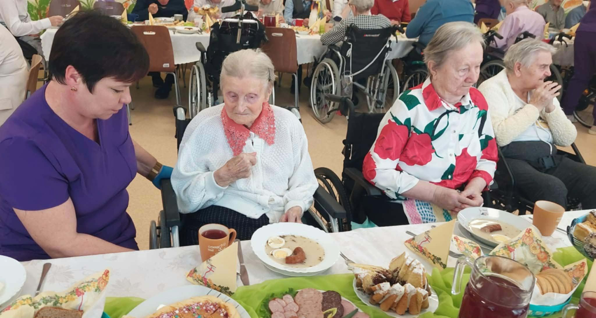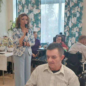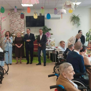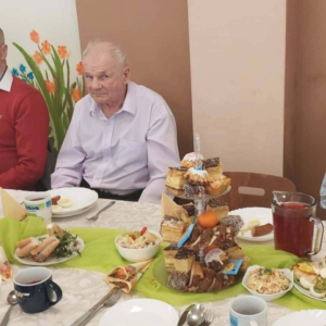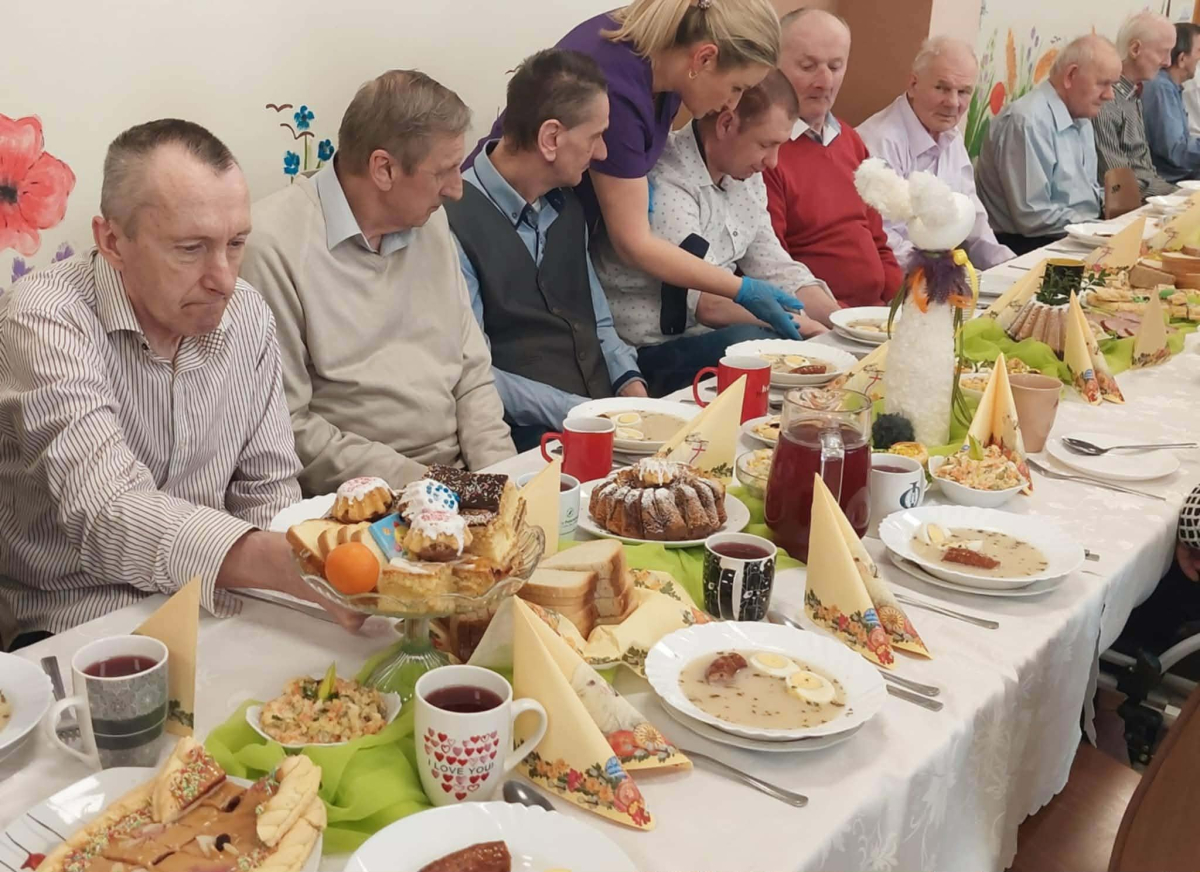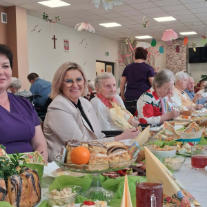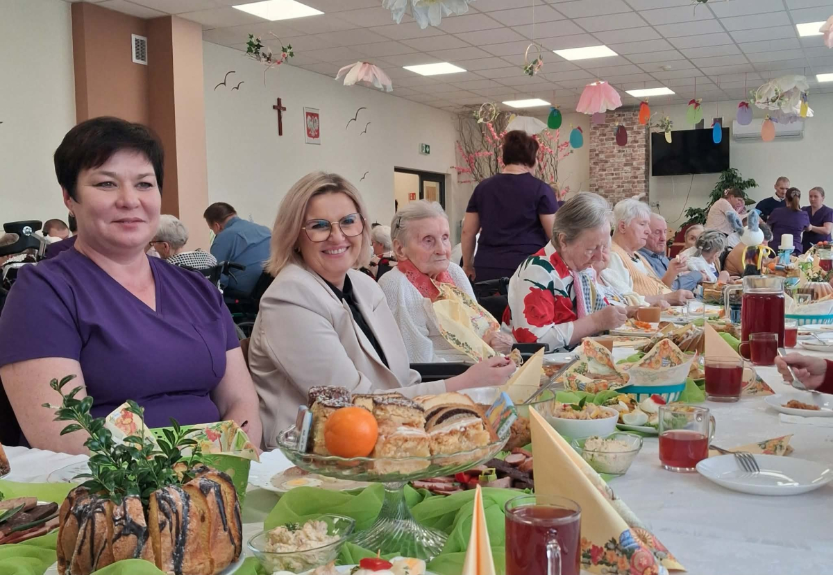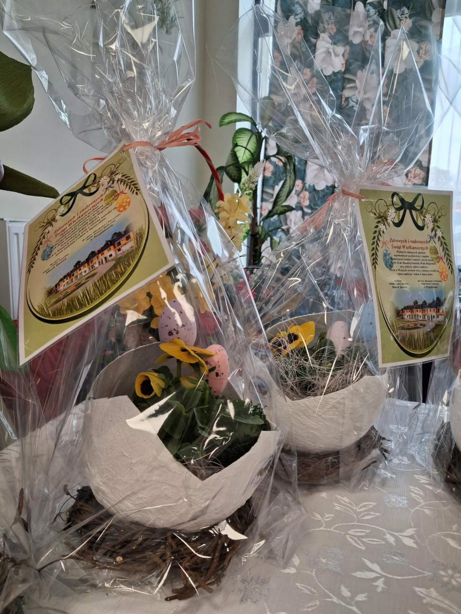 Pan Burmistrz przekazał wszystkim świąteczne życzenia ,,Niech ten czas Wielkiego Tygodnia, przygotowań, zabiegania i trudu przygotuje nas na piękne świętowanie, niech dla Was będą to radosne święta, bo tu znaleźliście dom i rodzinę to tu macie tak dużo miłości i dobrej opieki. Życzę Wam zdrowia, dobrej energii i radości z każdego dnia". Życzenia przekazali również Pani Sekretarz Wiesława Słowik i w imieniu Rady Przewodniczący Rady Miejskiej Wiesław Kowalczyk.