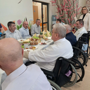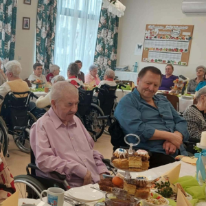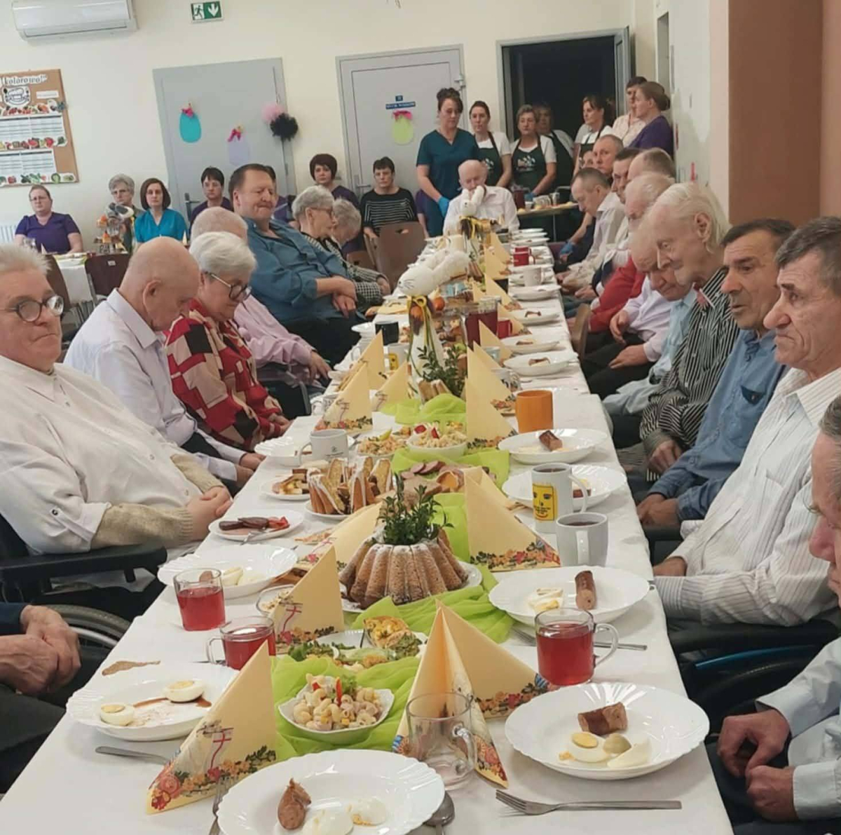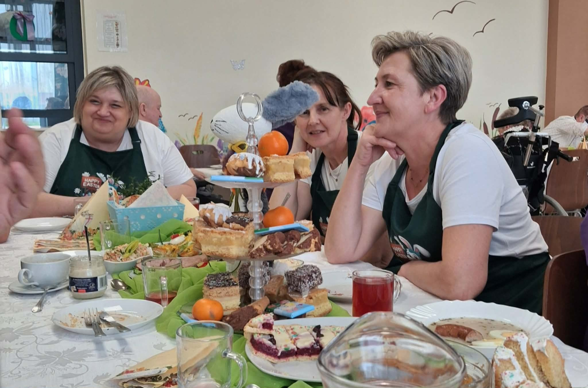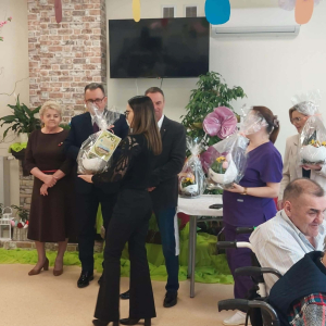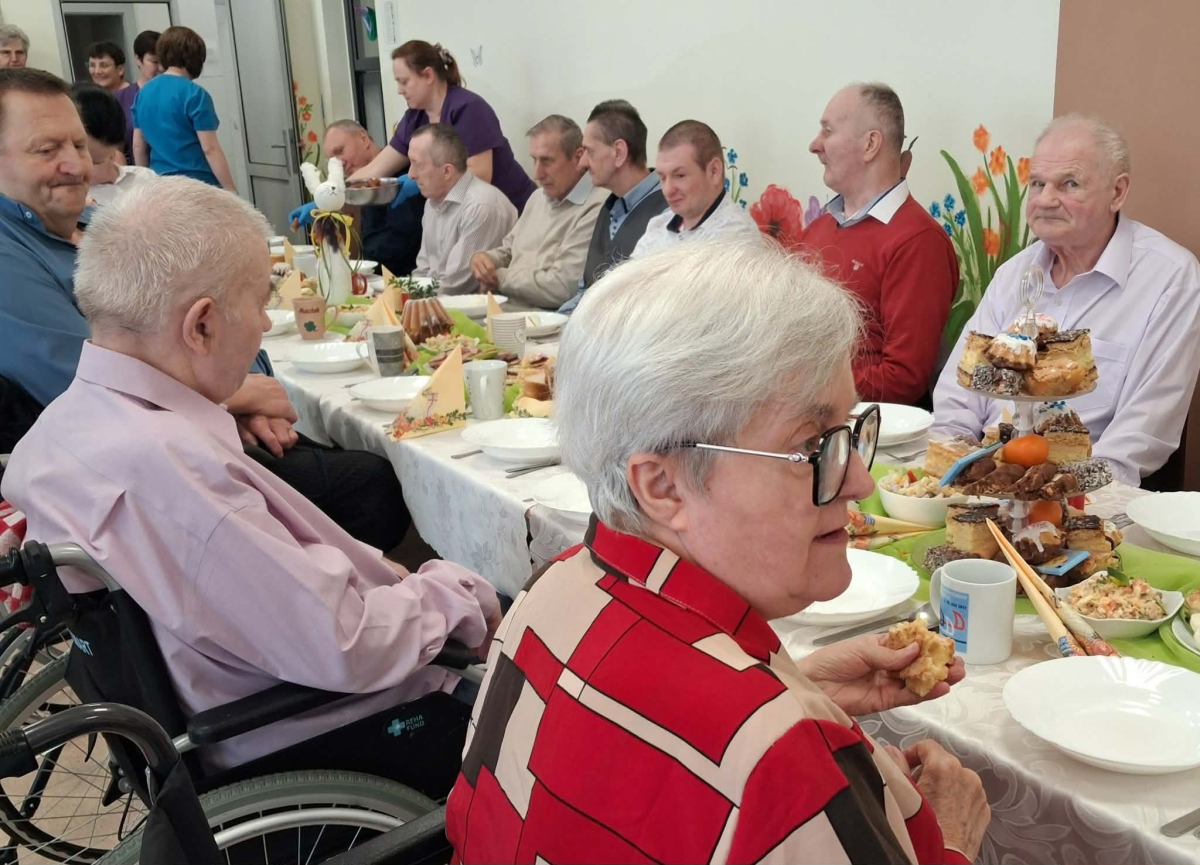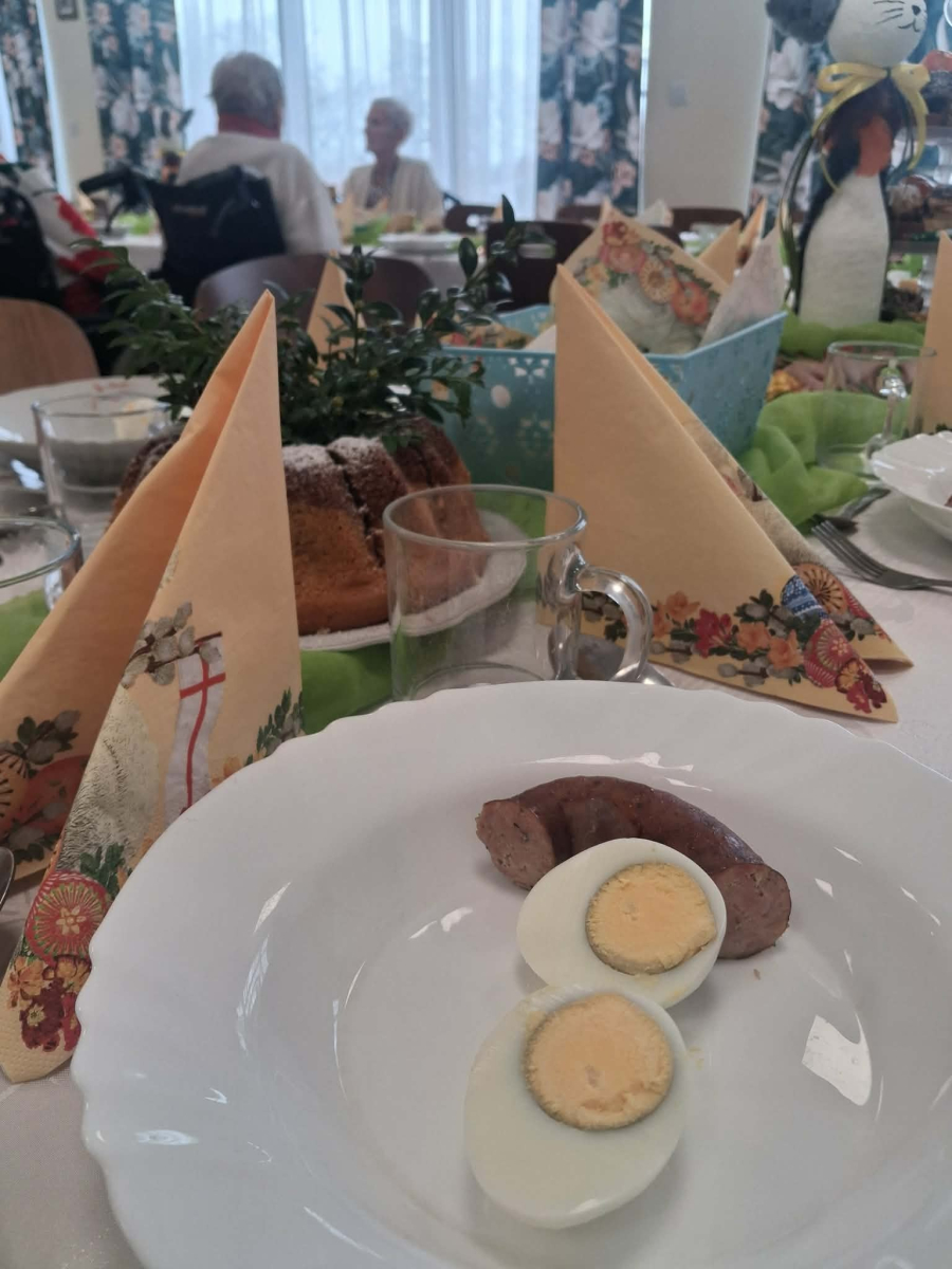 Pan Burmistrz przekazał wszystkim świąteczne życzenia ,,Niech ten czas Wielkiego Tygodnia, przygotowań, zabiegania i trudu przygotuje nas na piękne świętowanie, niech dla Was będą to radosne święta, bo tu znaleźliście dom i rodzinę to tu macie tak dużo miłości i dobrej opieki. Życzę Wam zdrowia, dobrej energii i radości z każdego dnia". Życzenia przekazali również Pani Sekretarz Wiesława Słowik i w imieniu Rady Przewodniczący Rady Miejskiej Wiesław Kowalczyk.