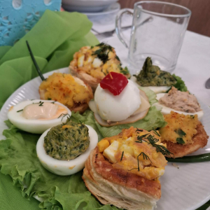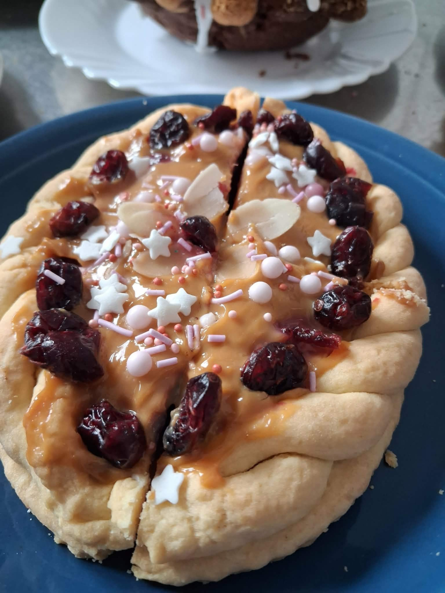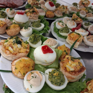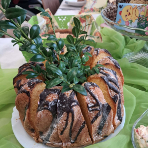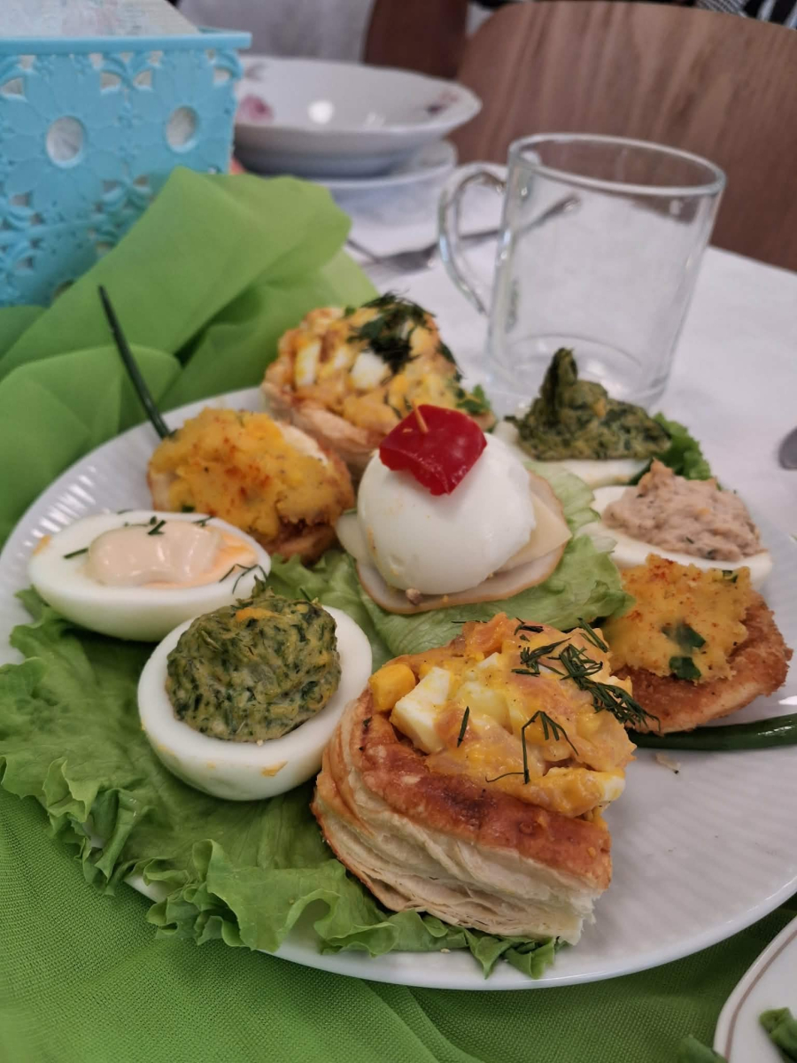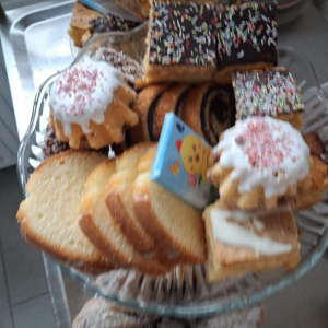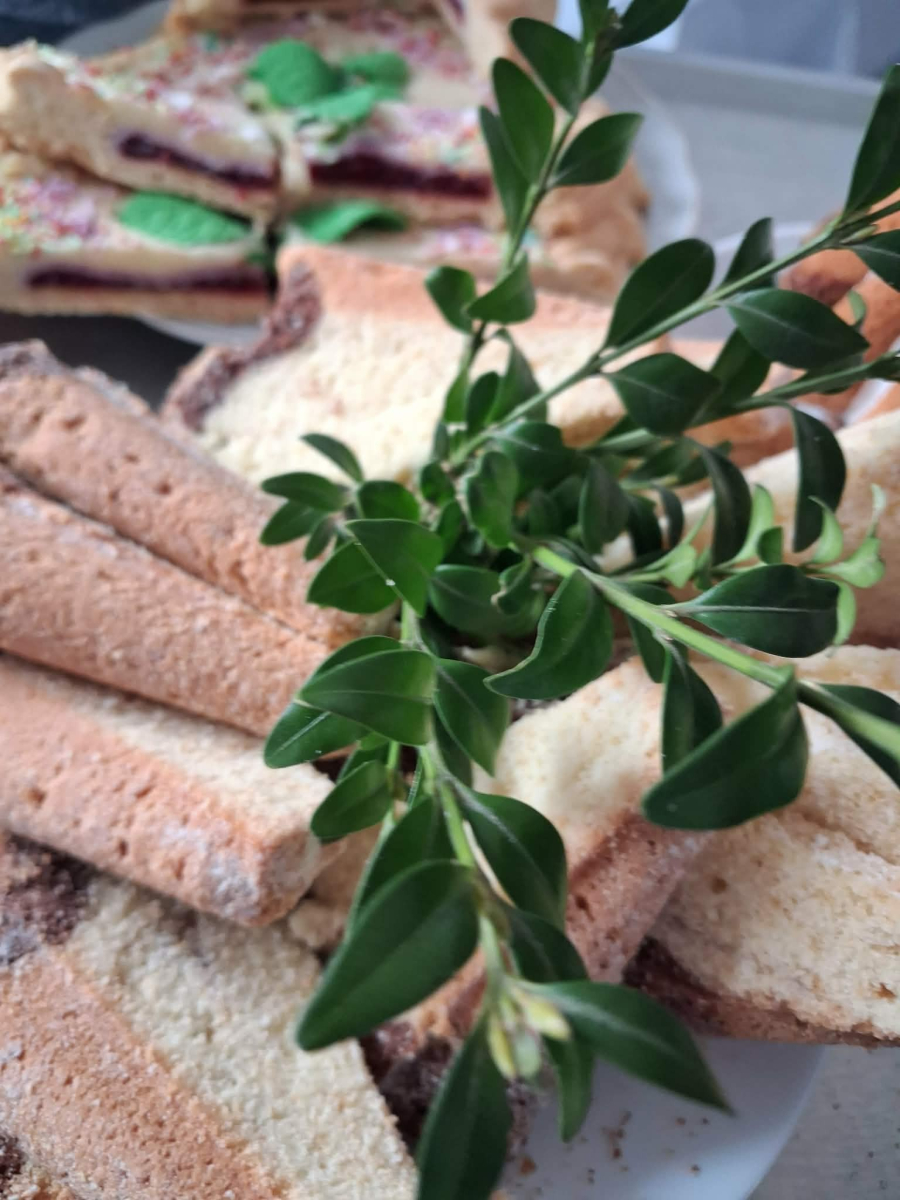 przygotowała same pyszności, był barszcz z kiełbaską i jajkiem, bigosik, sałatki, wędlinki i oczywiście mazurki i babki