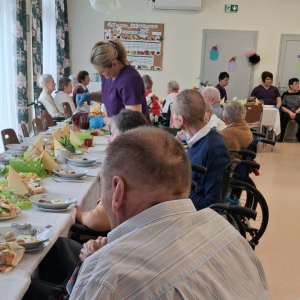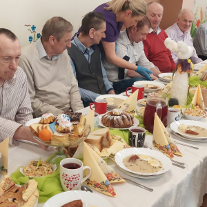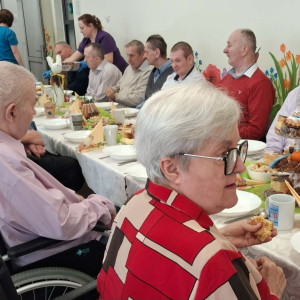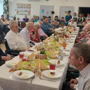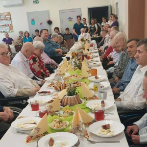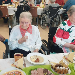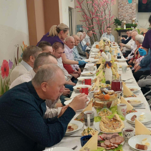 Przy wspólnym stole zasiedli nasi Goście i Przyjaciele Burmistrz Miasta i Gminy Iwaniska Marek Staniek, Sekretarz Wiesława Słowik, Mieszkańcy naszego Domu oraz Pracownicy.