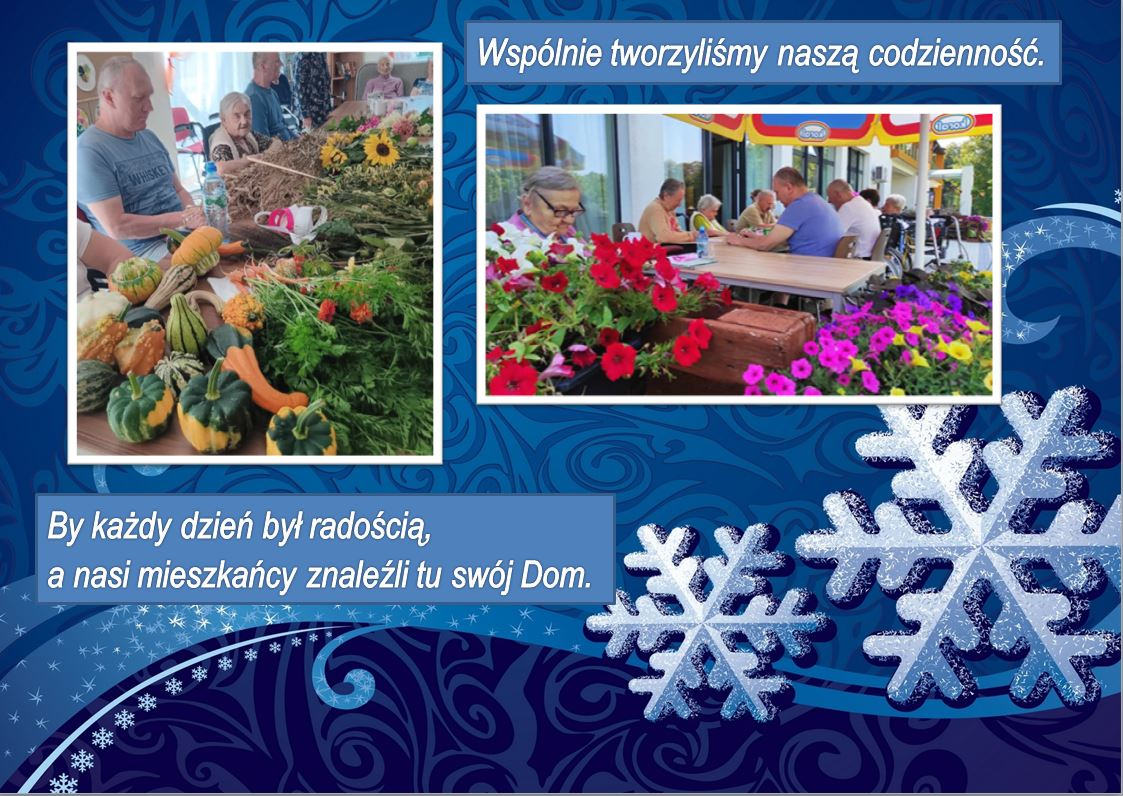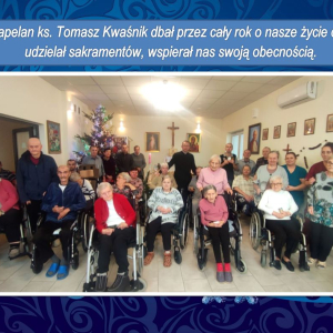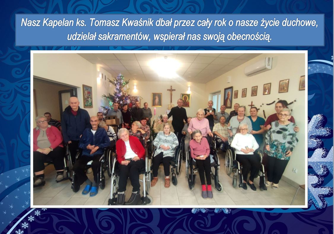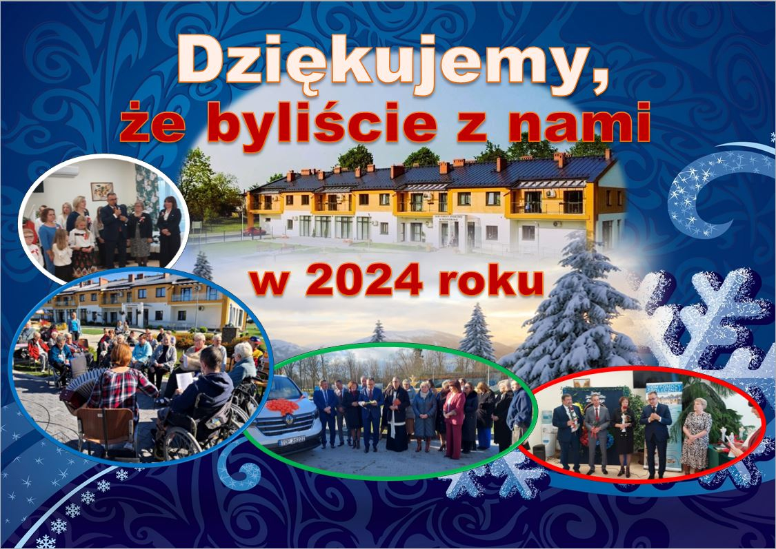 Dzisiaj jest ten czas i z całego serca dziękujemy wszystkim, którzy z nami byli, na dobre złe w tym mijającym 2024 r. Dziękujemy Wam za obecność, serce ofiarowane naszym Mieszkańcom, każdą pomoc i uśmiech.