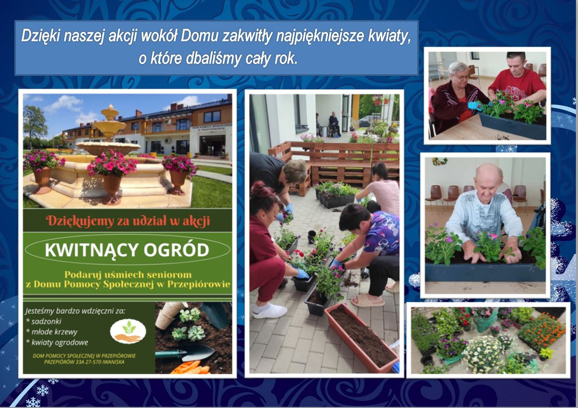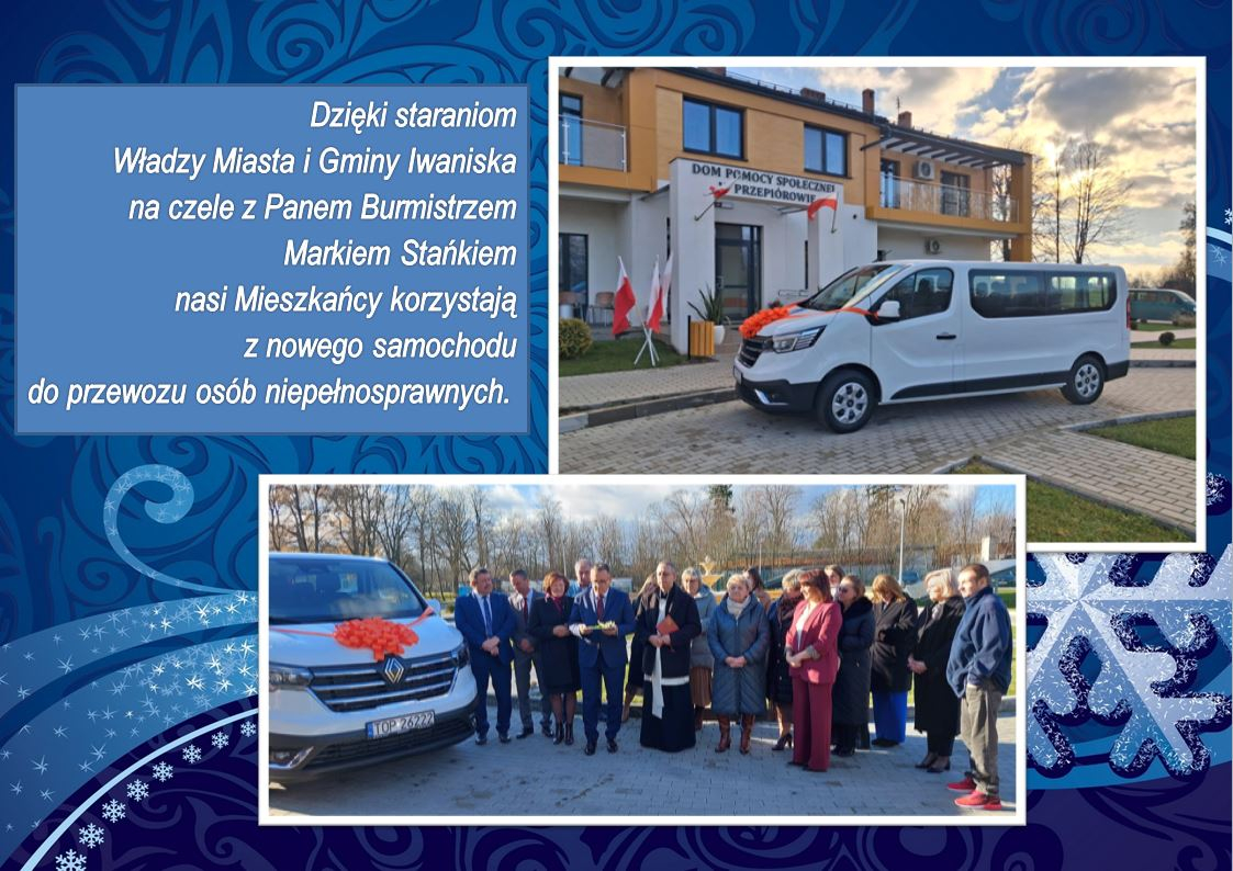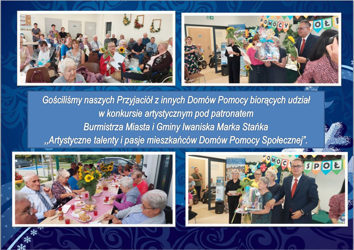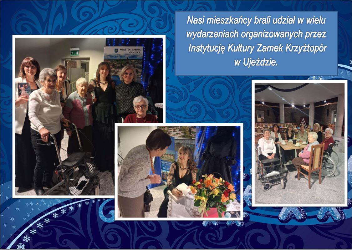 Dziękujemy Władzom Miasta i Gminy Iwaniska na czele z Burmistrzem Markiem Stańkiem za stworzenie tak pięknego Domu, za wsparcie i wyrozumiałość, za każde odwiedziny, upominki i dobre słowo. Dziękujemy naszej Przychodni ,,ZDROWIE" w Iwaniskach oraz szpitalom i całej służbie zdrowia za bardzo dobrą opiekę i pomoc w opiece nad naszymi pacjentami. Dziękujemy za ogromną pomoc i wielkie serce Dyrektorom Szkół, Instytucji Kultury za umilanie nam czasu, za każdy występ, przedstawienie, warsztaty i ofiarowane piękne serduszka. Dziękujemy naszym Wspaniałym i najlepszym PRACOWNIKOM zarówno administracyjnym, jak również pielęgniarkom, opiekunom, terapeutom, pokojowym , sprzątaczkom, kierowcy, pracownikom gospodarczym i oczywiście niezastąpionej i smacznej naszej kuchni. To dzięki Wam nasz Dom jest miejscem ciepłym, radosnym, gdzie dobro rodzi dobro, a uśmiech wita nas na Dzień Dobry,